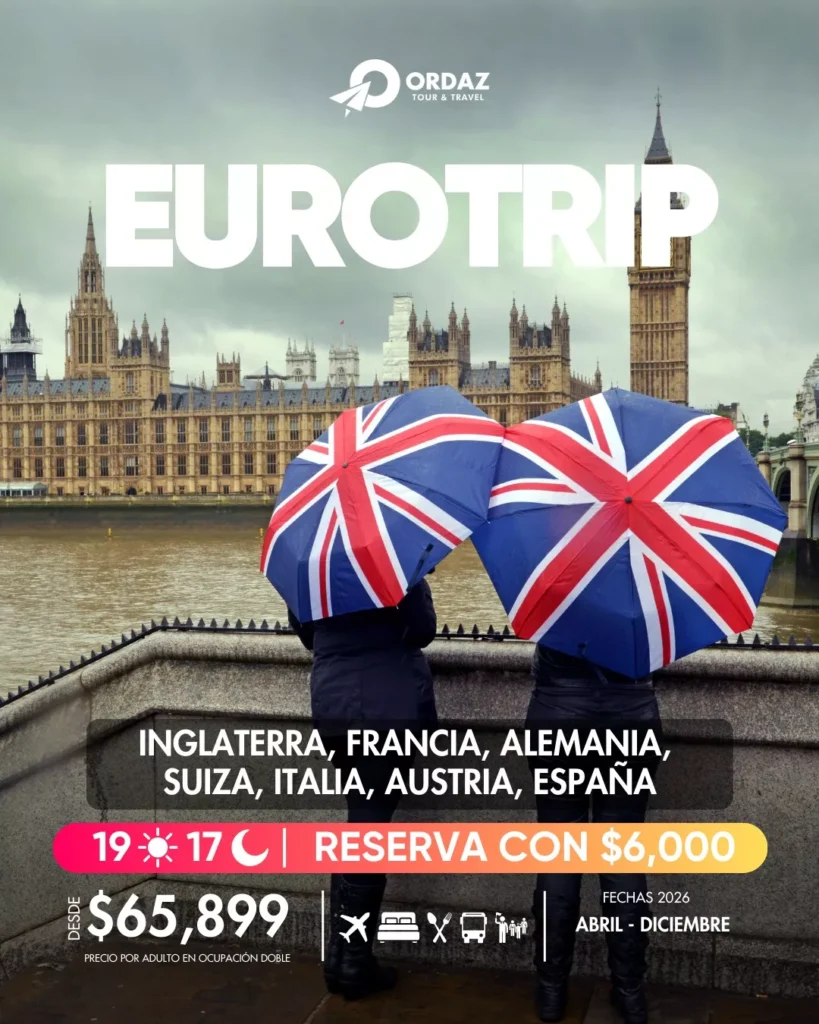 Conoce lo mejor de Inglaterra, Francia, Alemania, Suiza, Italia, Austria y España en un recorrido de 19 días y 17 noches lleno de historia, paisajes increíbles y cultura sin igual. 🌍🧳
